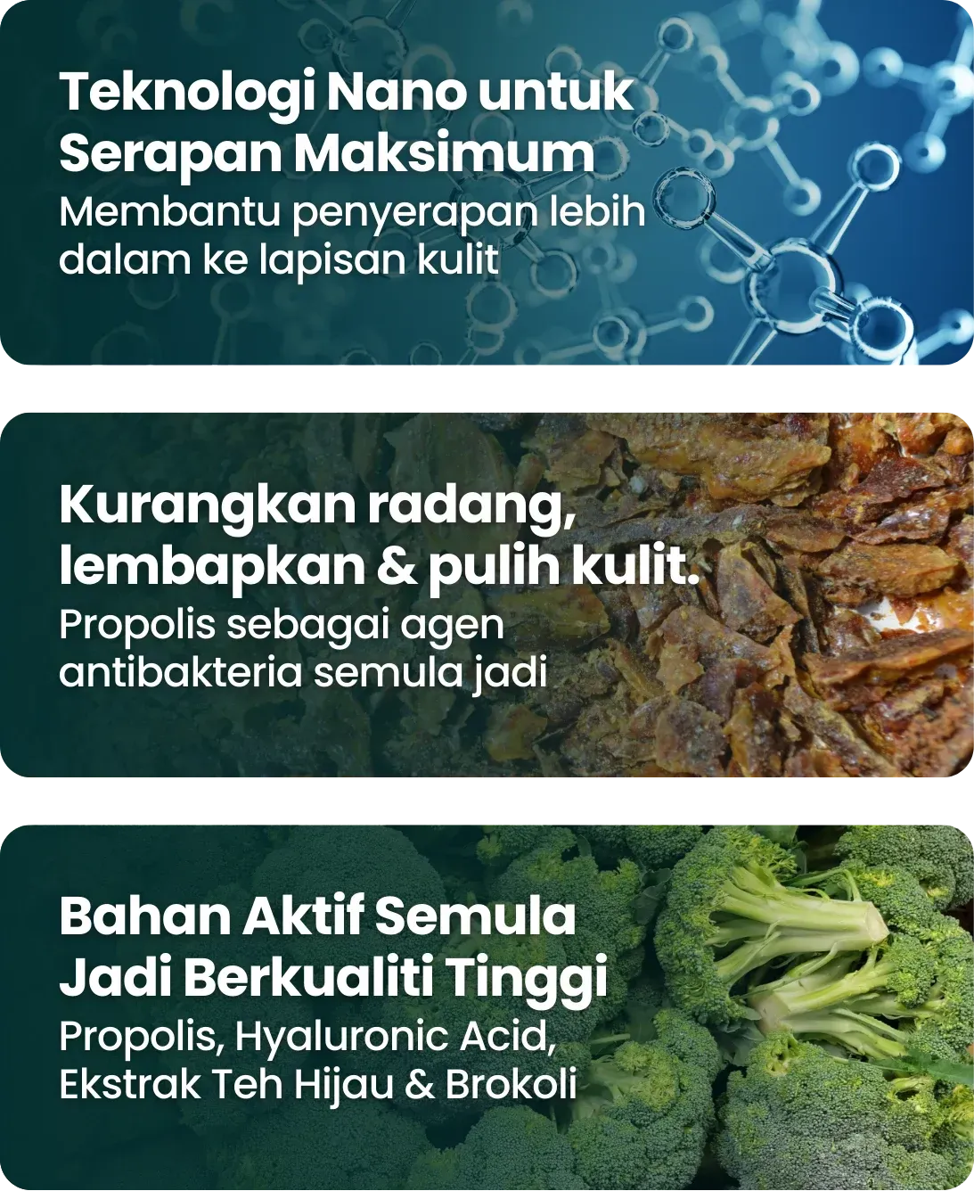Disaranakan sapu 3-4 kali sehari atau mengikut keperluan, untuk hasil yang lebih cepat dan optimum.